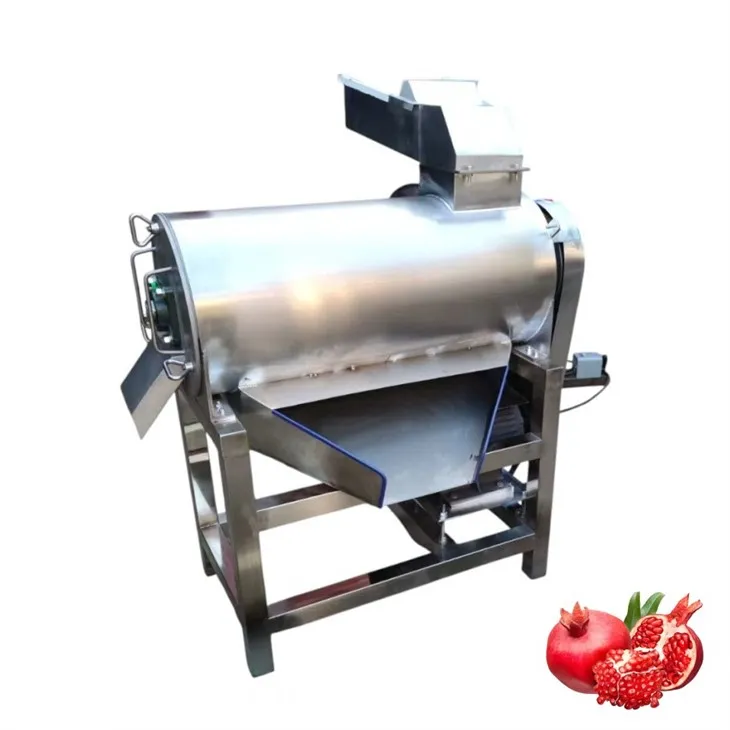 بعد أن يدخل الرمان إلى جهاز التكسير العلوي من قادوس تغذية المواد ، سيضغط جهاز التكسير العلوي على الرمان لفتحه وسيقوم الجهاز السفلي السفلي ببطل الرمان مرة أخرى. بعد بثق المستوى - ، يتم فصل قشر وبذرة الرمان بشكل أساسي وإسقاطهم في الجهاز المنفصل. ستنخفض بذرة الرمان من شبكة الغربال وسيتم تفريغ القشر من الجزء الذيل. سيتم نقل البذور والعصير إلى الإجراء التالي بواسطة مضخة المسمار المخصصة بالإضافة إلى ذلك.